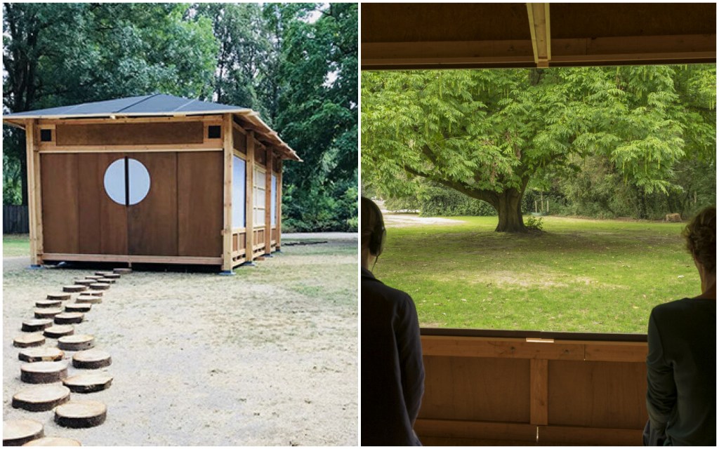 Het paviljoen is een open constructie die refereert aan verschillende functies, maar de ruimte niet definieert. Door verschillende toevoegingen, zoals schuifpanelen en -ramen, kan de ruimte transformeren van een gesloten ruimte naar een open ruimte, waar de buitenwereld zich niet of geleidelijk ontvouwt. Het staat op een prachtige plek, met rondom uitzicht op de grote tuin van Artphy, met vele bijzondere bomen en de natuurlijke vijver. Grenzend aan de meanderende Ruiten Aa.