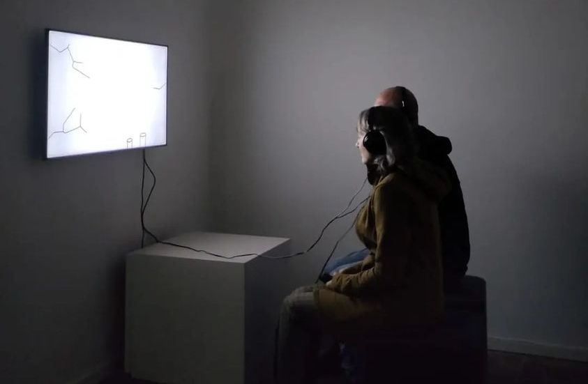 De deeknemende kunstenaars verkennen het donker in tekeningen, foto’s, installaties, beeld en geluid, schilderijen en meer.